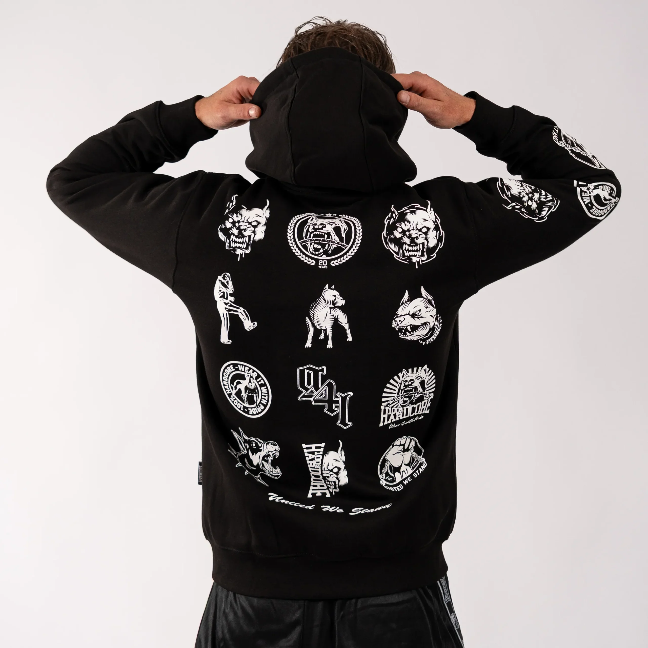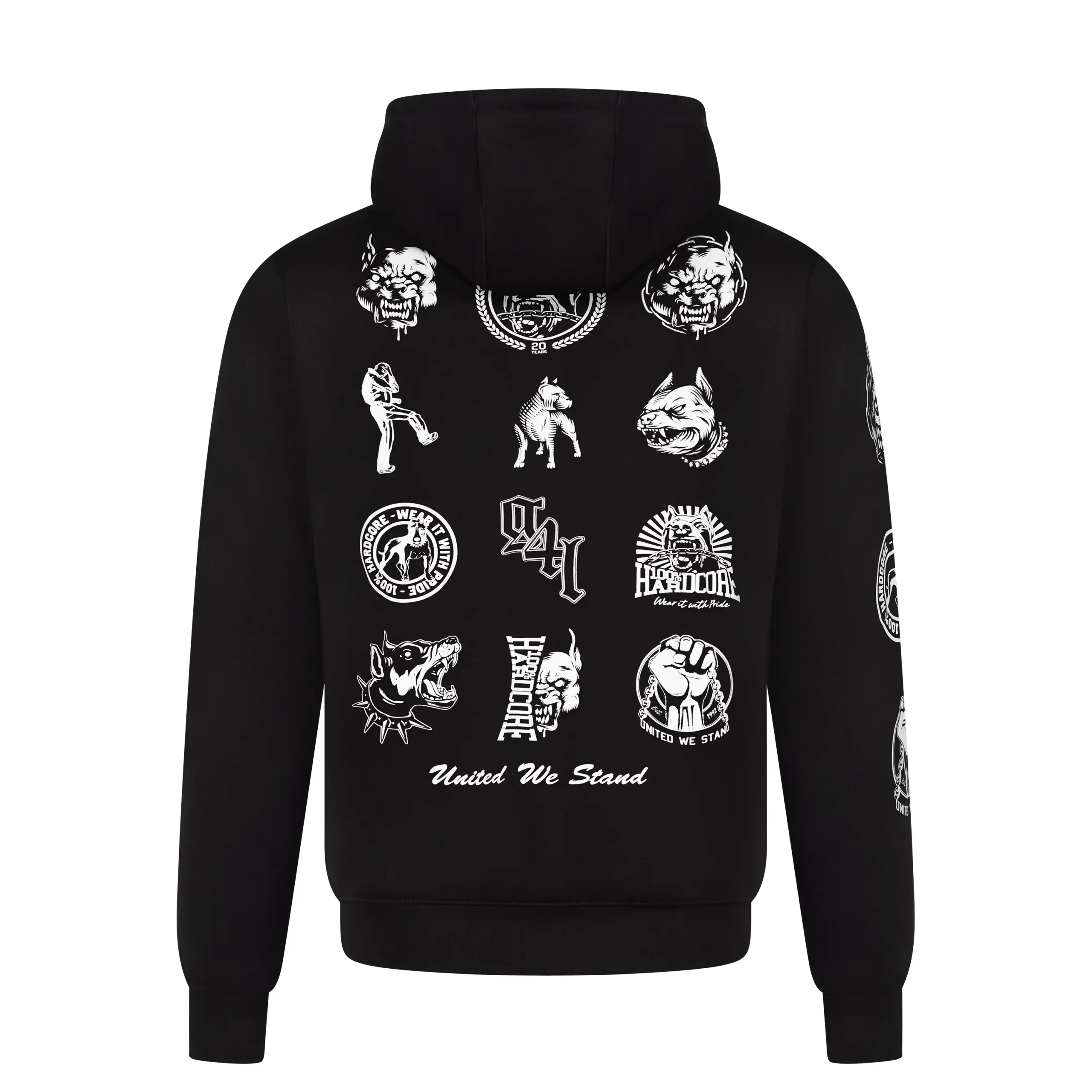 Celebrate the 100% hardcore era with this exclusive hooded zipper featuring 12 iconic logos and artwork from years past. From oldskool classics to the latest designs. A tribute to the best of the best, united in one powerful piece.
