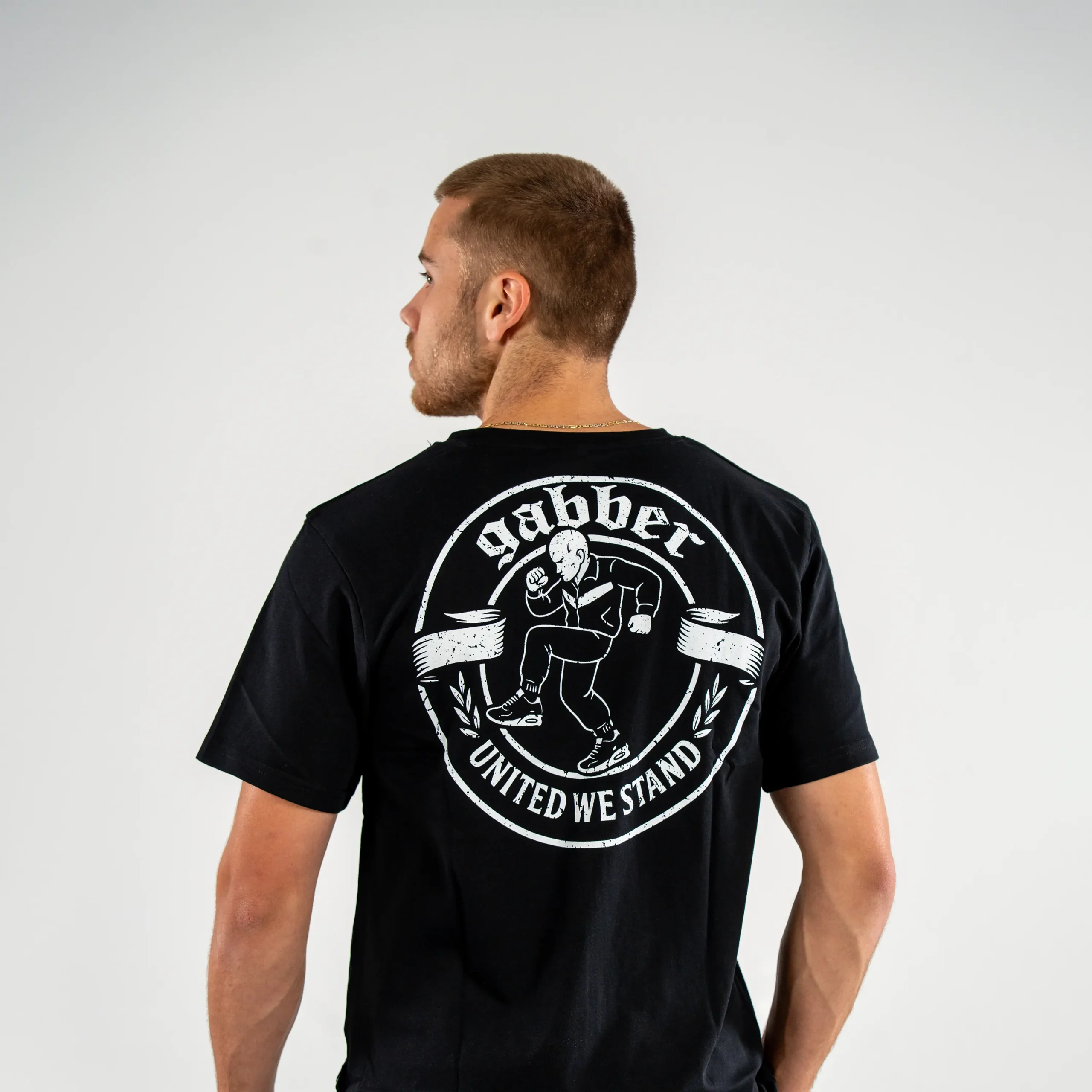 Avec l'imprimé "Gabber" accrocheur sur le devant et l'illustration puissante "United We Stand" au dos, ce t-shirt est fait pour représenter la scène à haute voix et avec fierté.