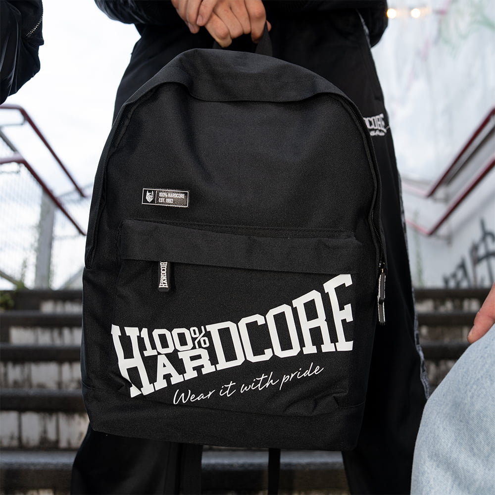 Hochwertiger Rucksack aus 100% Hardcore: – Mit 100% Hardcore Logo auf der Vorderseite – Laptopfach – Verstellbare Schultergurte