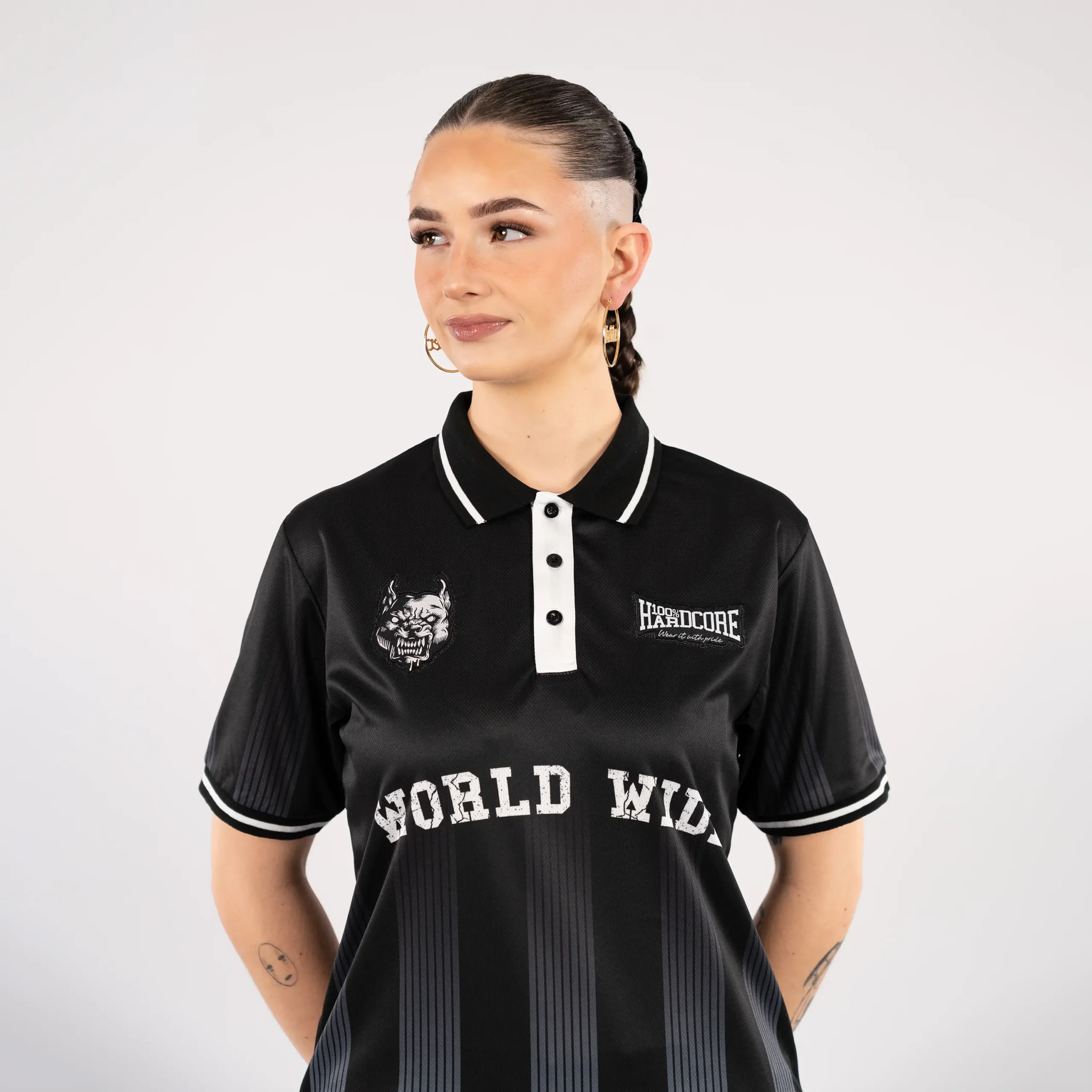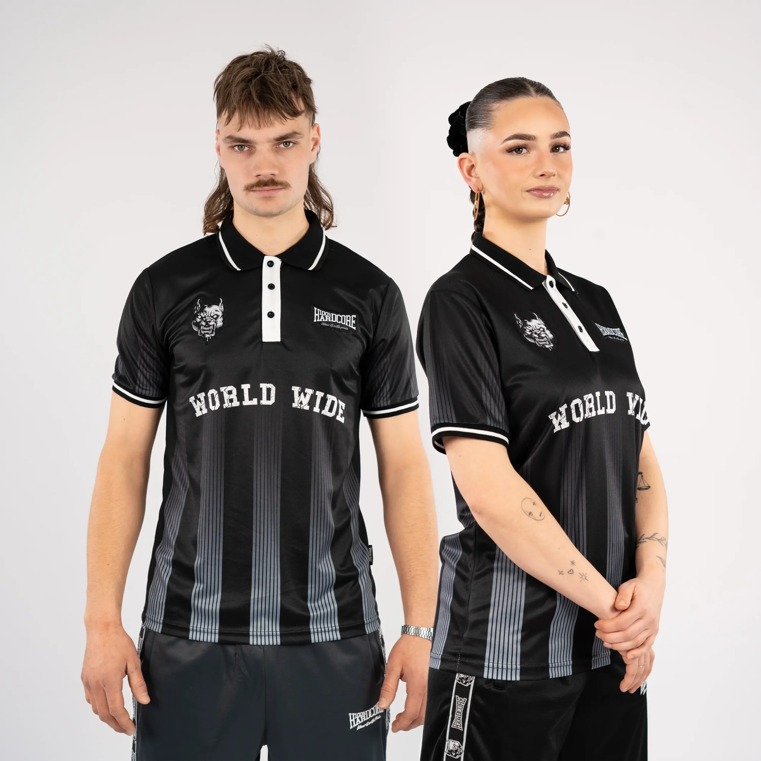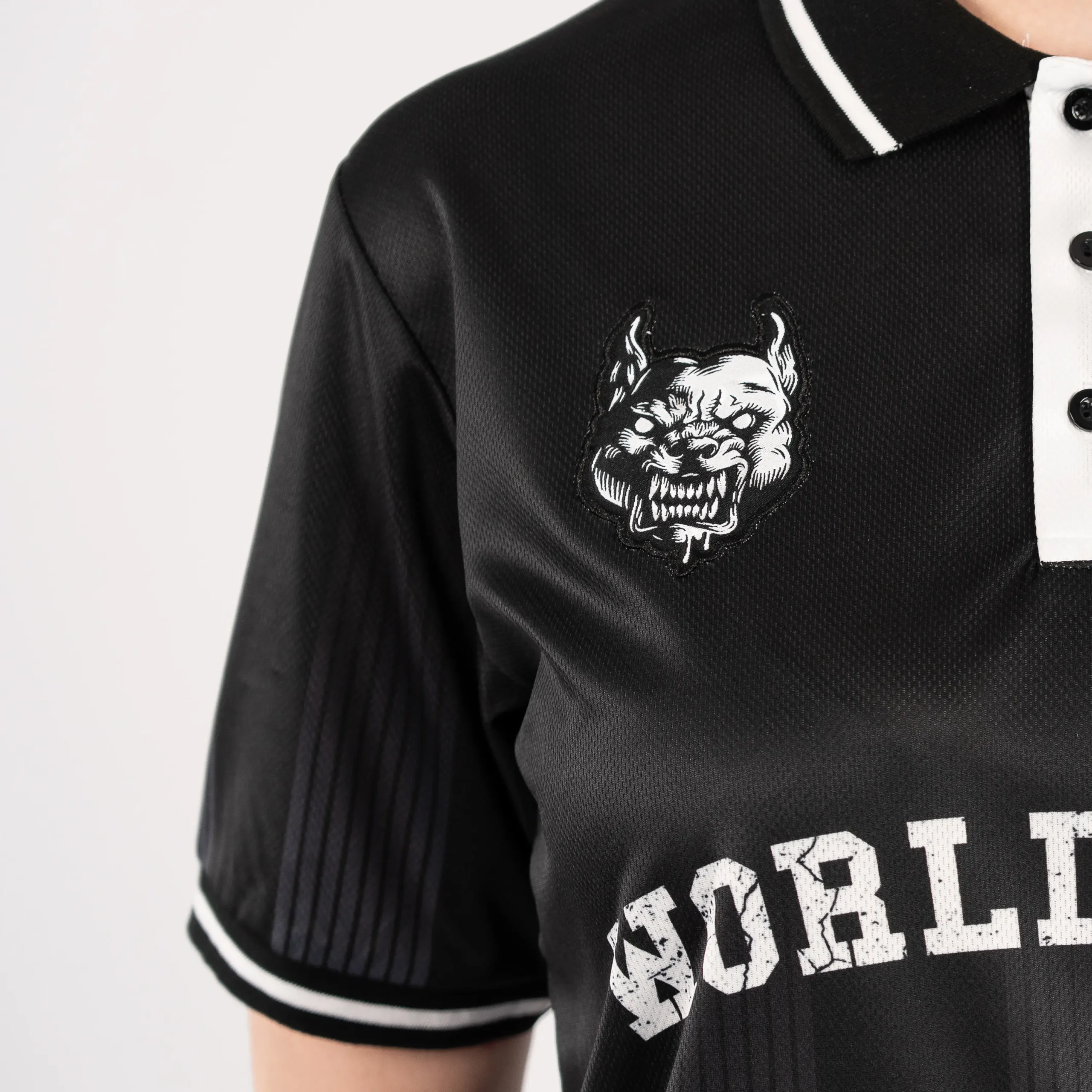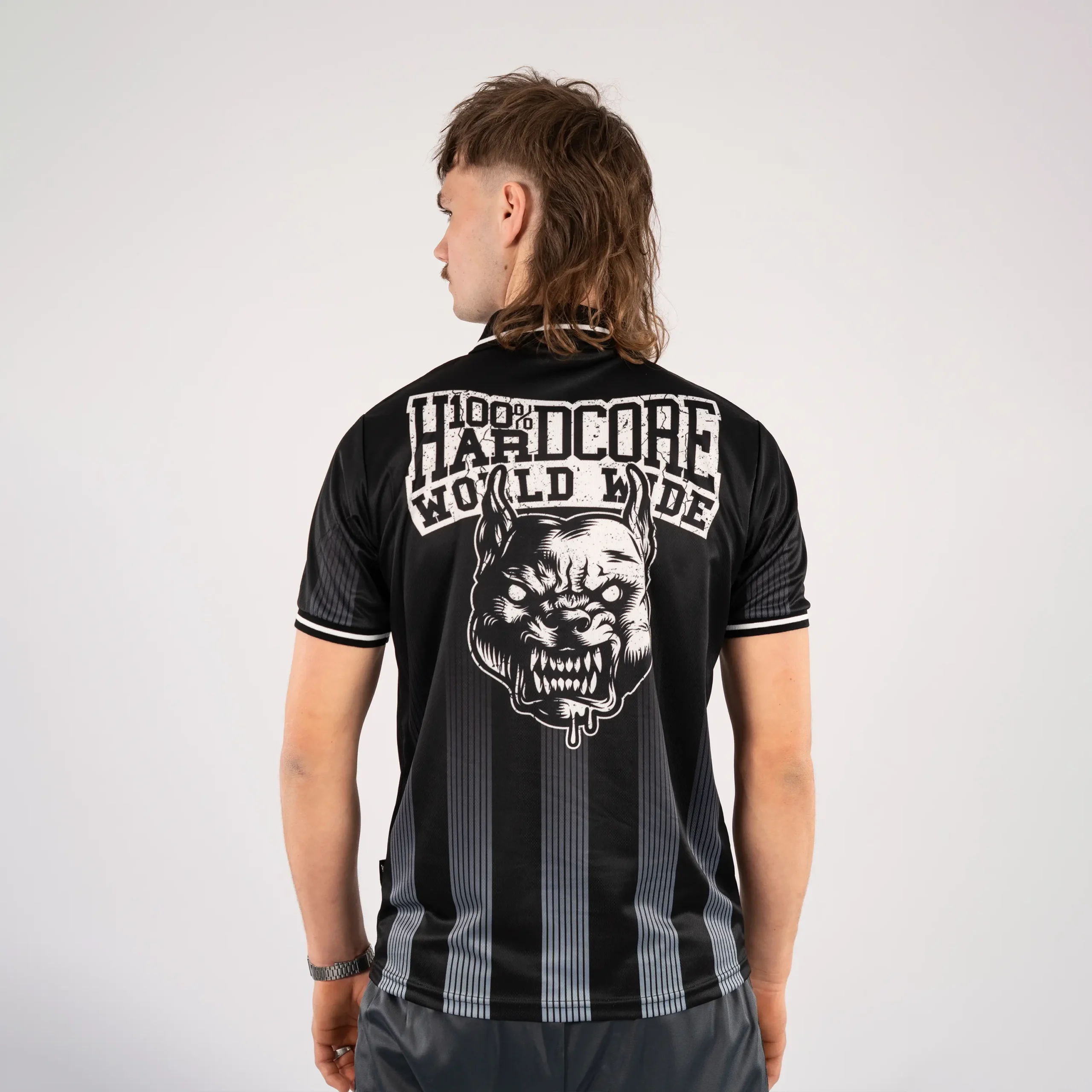Das 100% Hardcore Soccershirt Crowned zeigt ein gekröntes Löwen-Artwork auf der Rückseite und dezente Branding-Details auf der Vorderseite. Die Farbkombination Schwarz und Orange verleiht dem Hemd ein sauberes und erkennbares Aussehen.