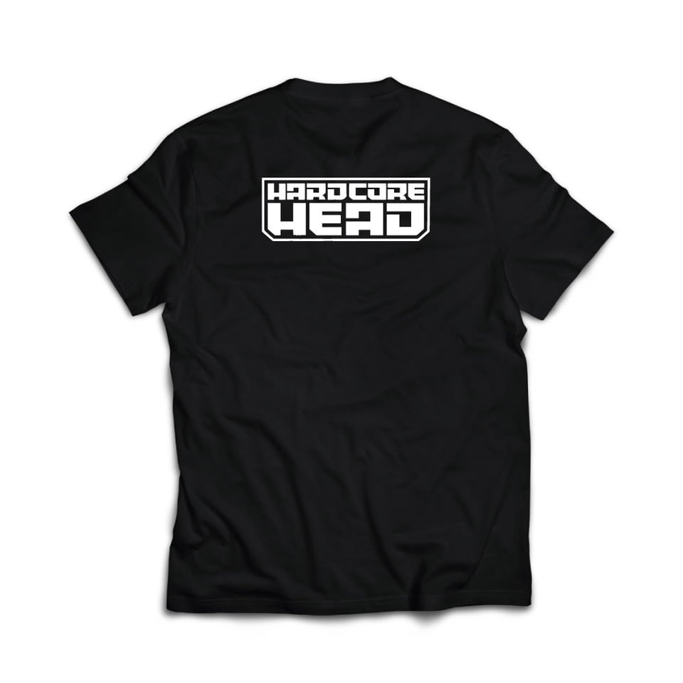 Grosses Logo auf Front und Rückseite HardcoreHead Schriftzug