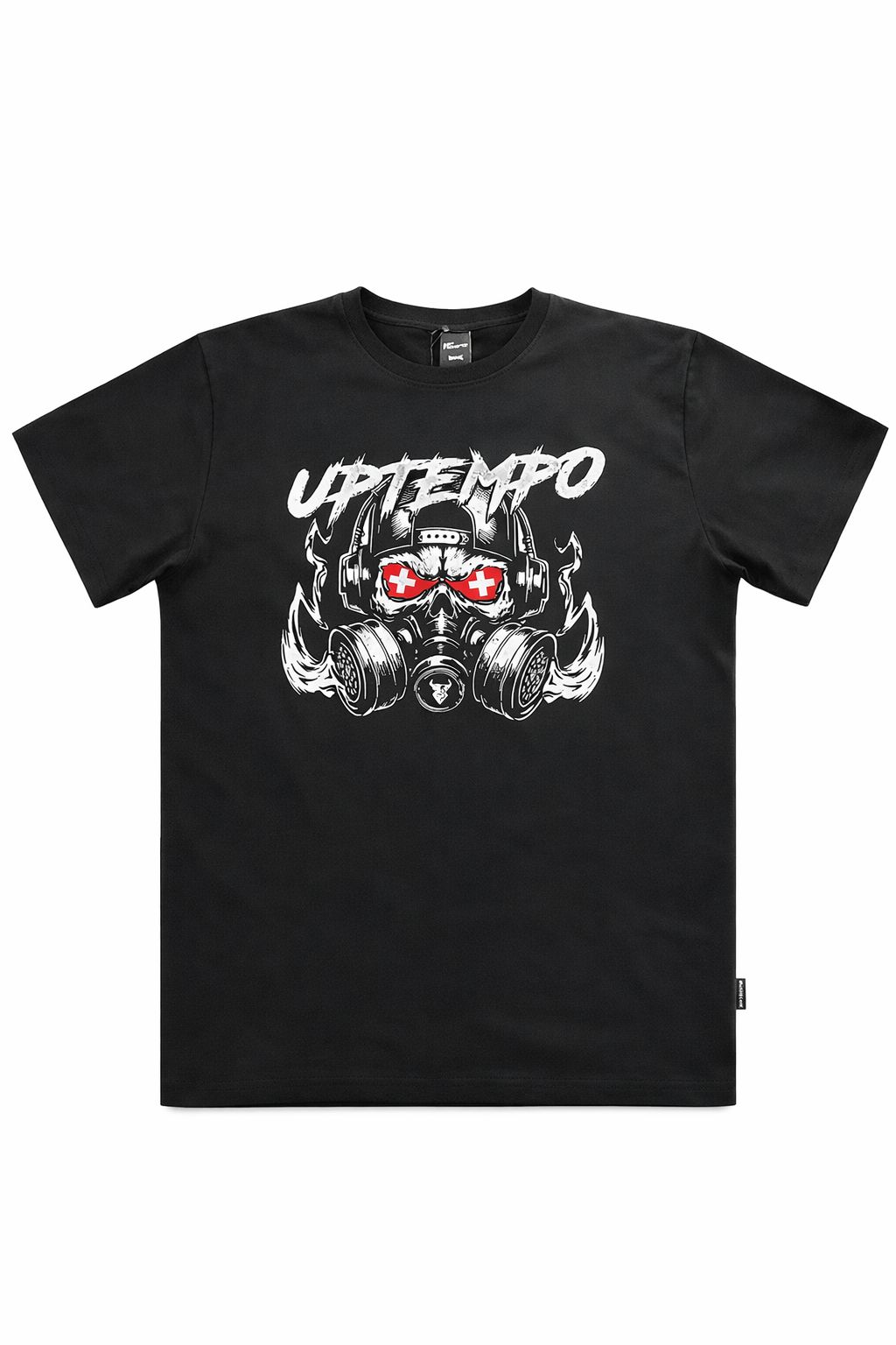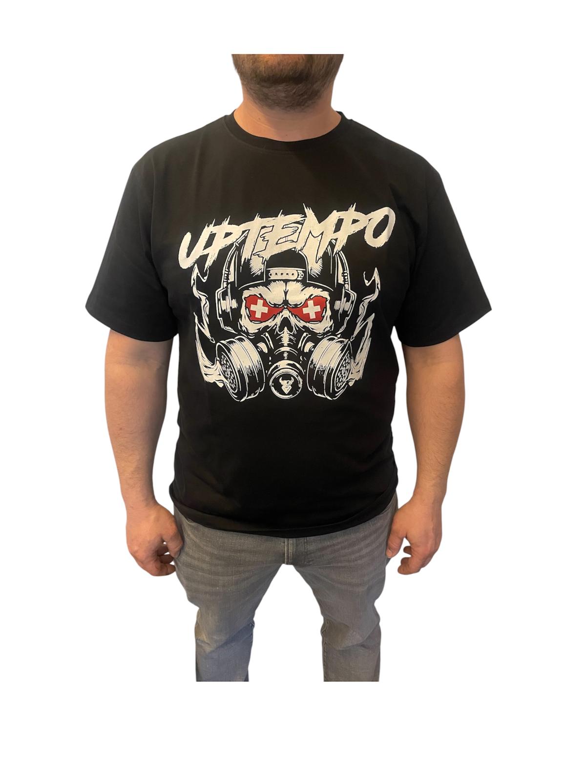 Details: Uptempo-Logo und Gasmasken-Artwork, “240 BPM All Night”-Slogan, weicher Baumwollstoff